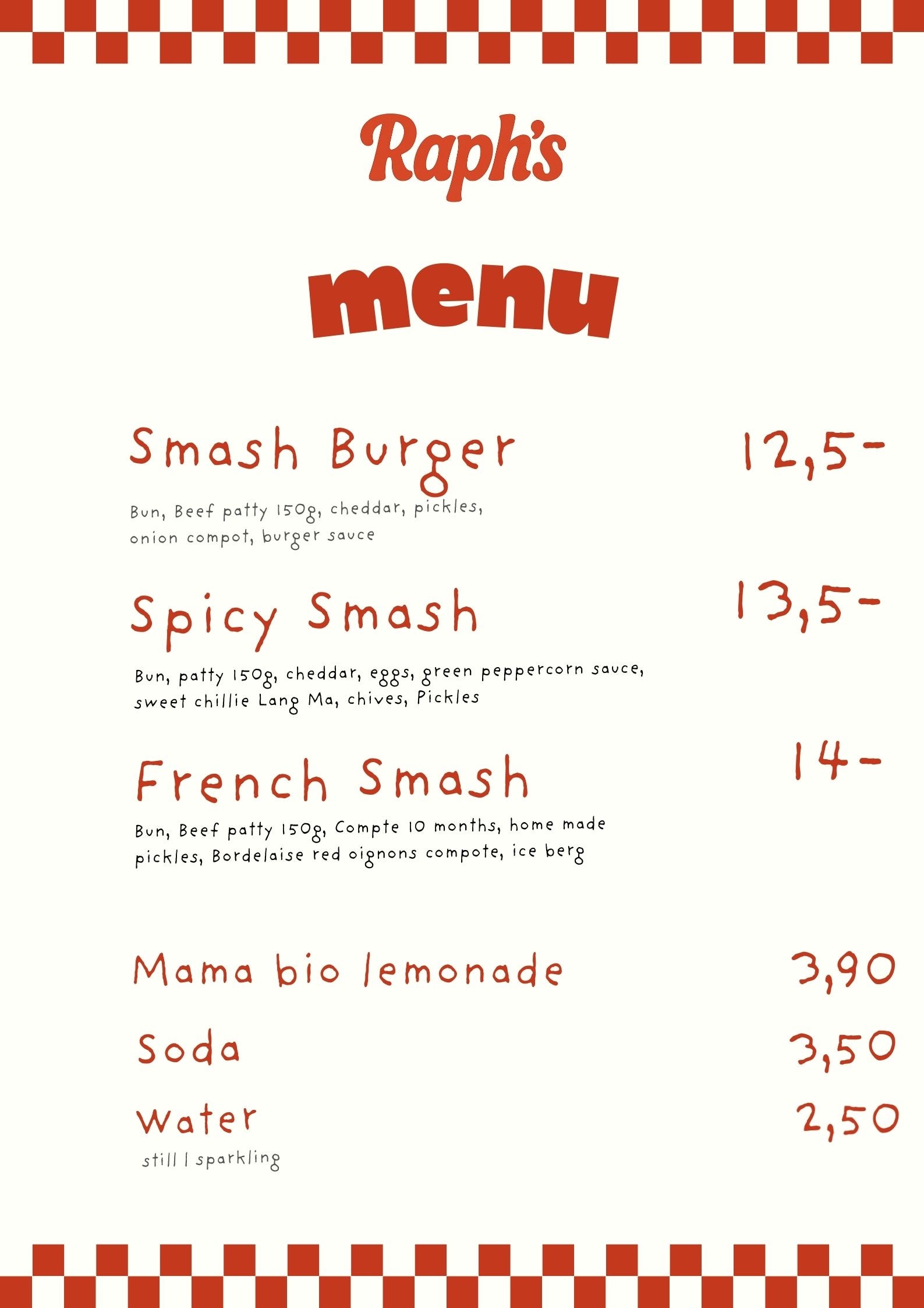Bij Raph's specialiseren we ons in smakelijke burgers en hartverwarmende sandwiches, perfect voor elke winterdag. Onze smash-burgers komen in drie varianten: de klassieke burger met rundvlees, cheddarkaas, burgersaus, augurken en een compote van uien. Voor de liefhebbers van wat pit is er de spicy burger met een groene peperkorrelsaus, bieslook, een pikant zoetige krokante saus en ei. De French burger is een bijzondere keuze met Comté kaas, mosterdmayonaise en een vinaigrette van ijsbergsla.